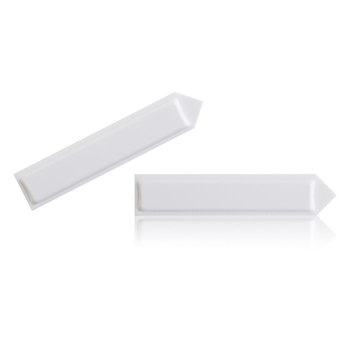 Peças retangulares brancas com extremidade pontiaguda em fundo branco