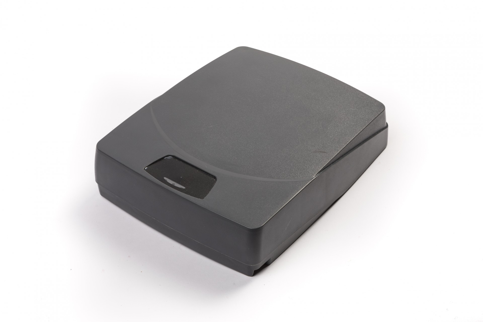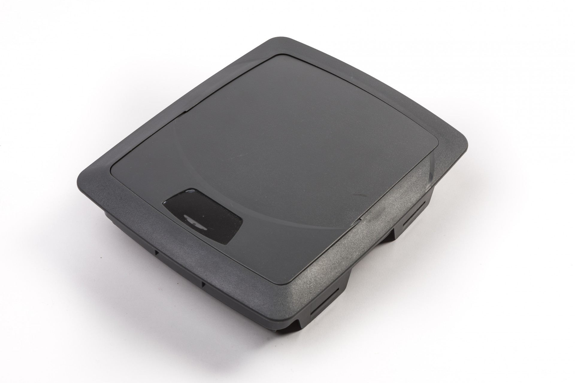 Dispositivo quadrado preto com pequena área negra no centro sobre fundo branco