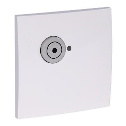 Painel quadrado branco com entrada redonda metálica e pequeno orifício