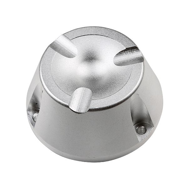 Botão metálico prateado com três saliências arredondadas